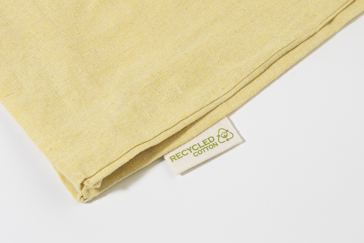 Sacoșă pentru cumpărături, reutilizabilă, din bumbac reciclat, cu mânere lungi și etichetă distinctivă din bumbac reciclat. 100% bumbac reciclat, 140 g/m².