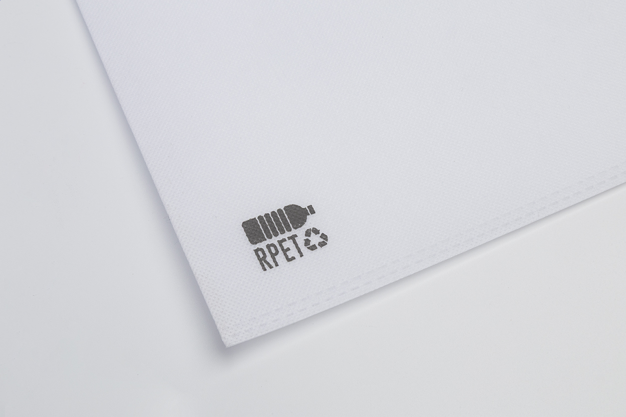 Sacoșă de cumpărături, din RPET nețesut, cu mânere tăiate, 70 g/m². Cu semn distinctiv RPET.