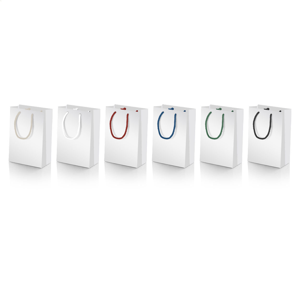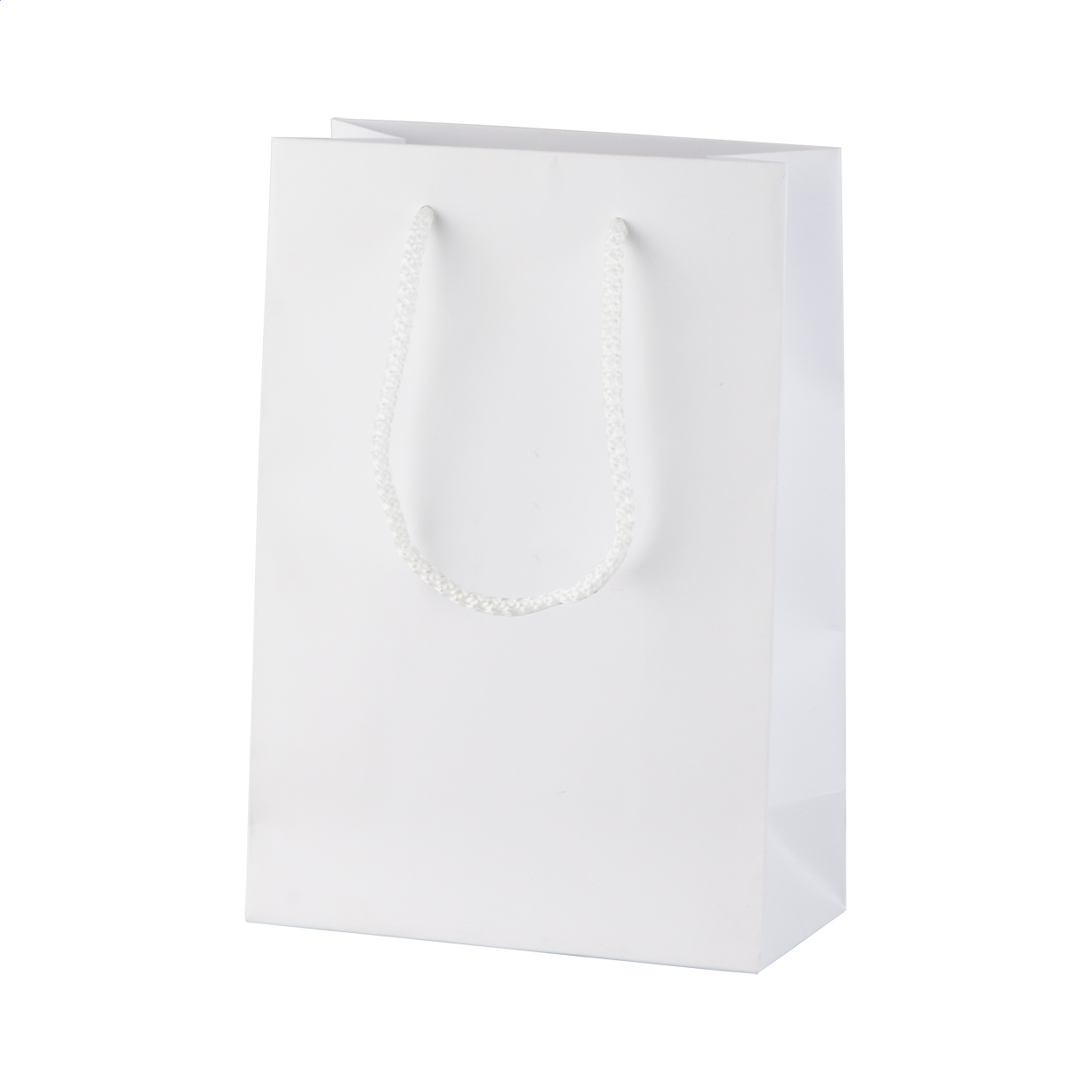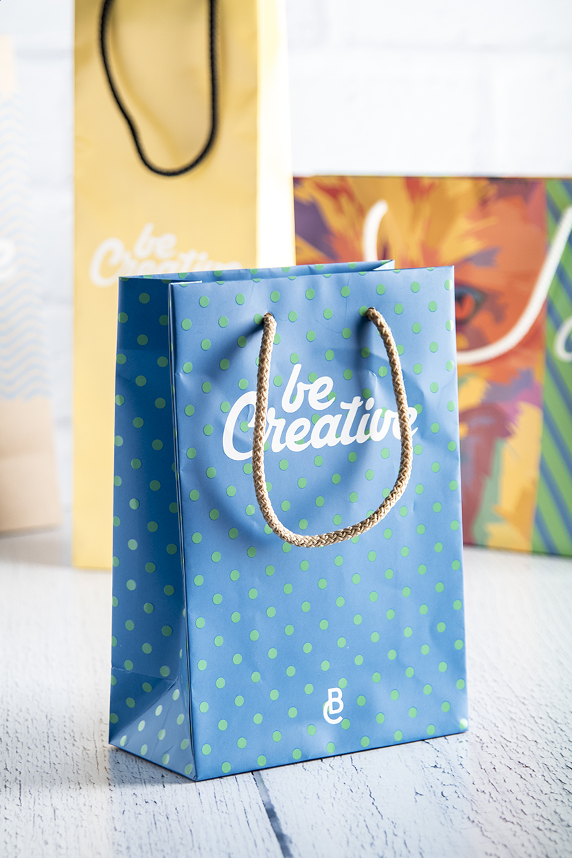 Sacoșă de hârtie personalizată, mânere din polipropilenă. Imprimare: CMYK sau 5 culori lineare. Cantitate minimă de comandă 500 buc.
