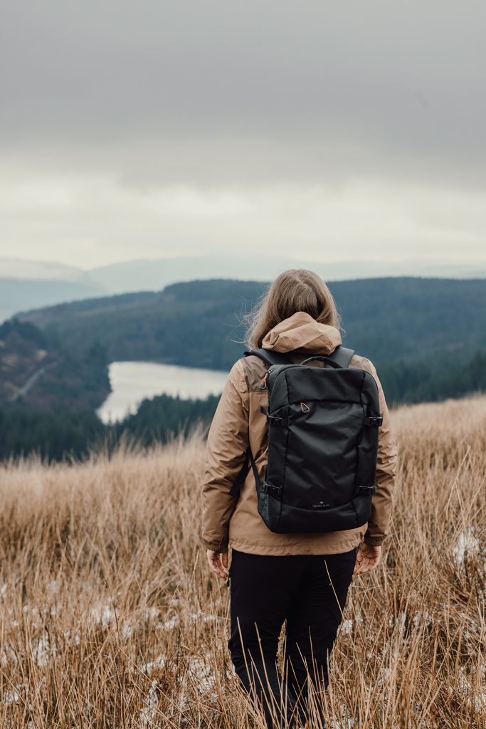 The Nordic Drift RCS Travelling Backpack 25L delivers organised travel in a PVC-free, lightweight design (32.5×10×49.5 cm, 807 g). Made from RCS-certified recycled polyester with black finish and orange accents. Features trolley-style main compartment with straps and mesh zip pocket, 15.6" laptop compartment with elastic mesh pockets, top pocket, reflective logo, and adjustable compression straps. Ergonomic mesh back with adjustable shoulder and chest straps. Fully traceable via DPP QR-codes. Each bag includes a premium FSC®-certified hangtag with detailed information, making it a responsible choice—for you and the planet. All Nordic Drift products are tested for quality. Because we strongly believe in the performance and durability of our gear, every item is backed by a 5-year warranty on manufacturing defects.