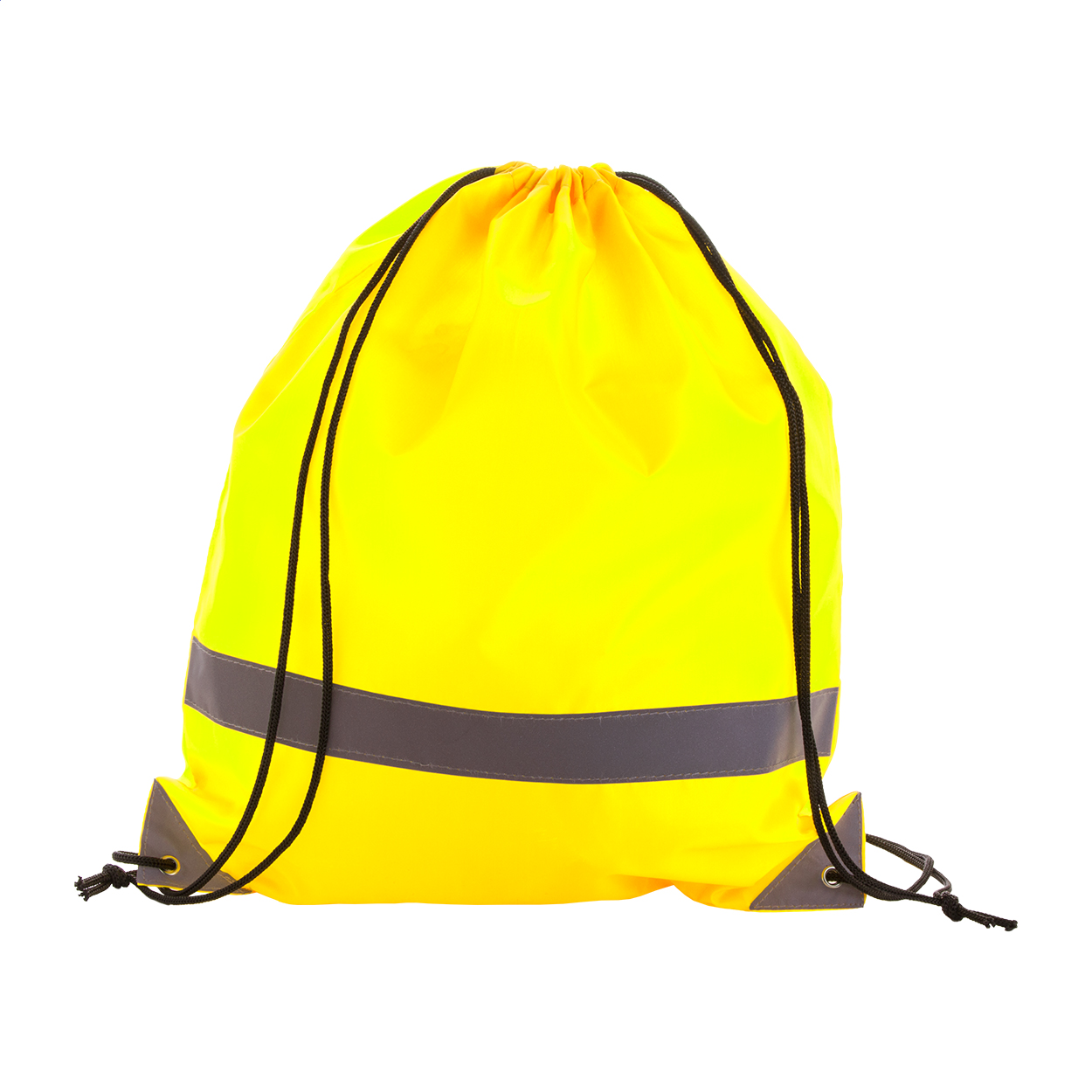 Rucsac cu bandă reflectorizantă. Material: poliester 190T. Numai pentru uz promoțional, produsul nu se califică drept Echipament de protecție personală.