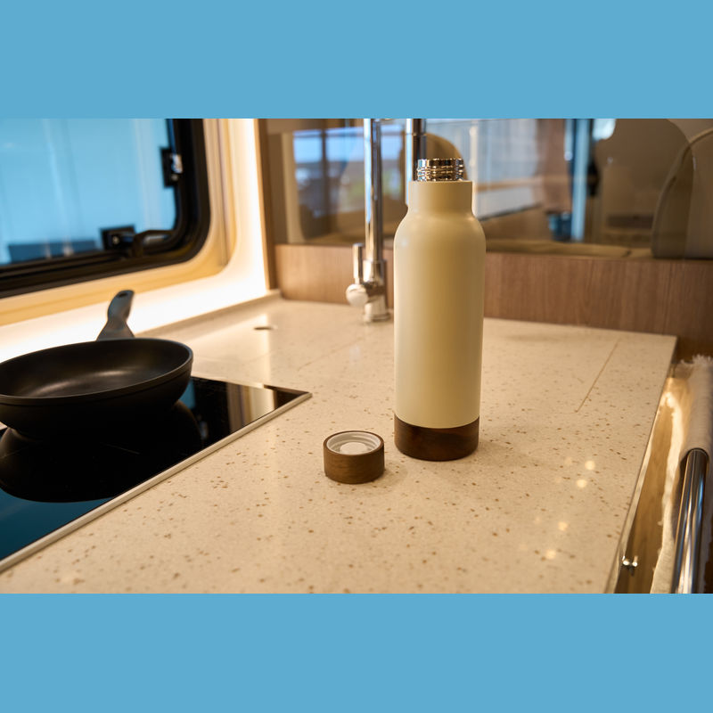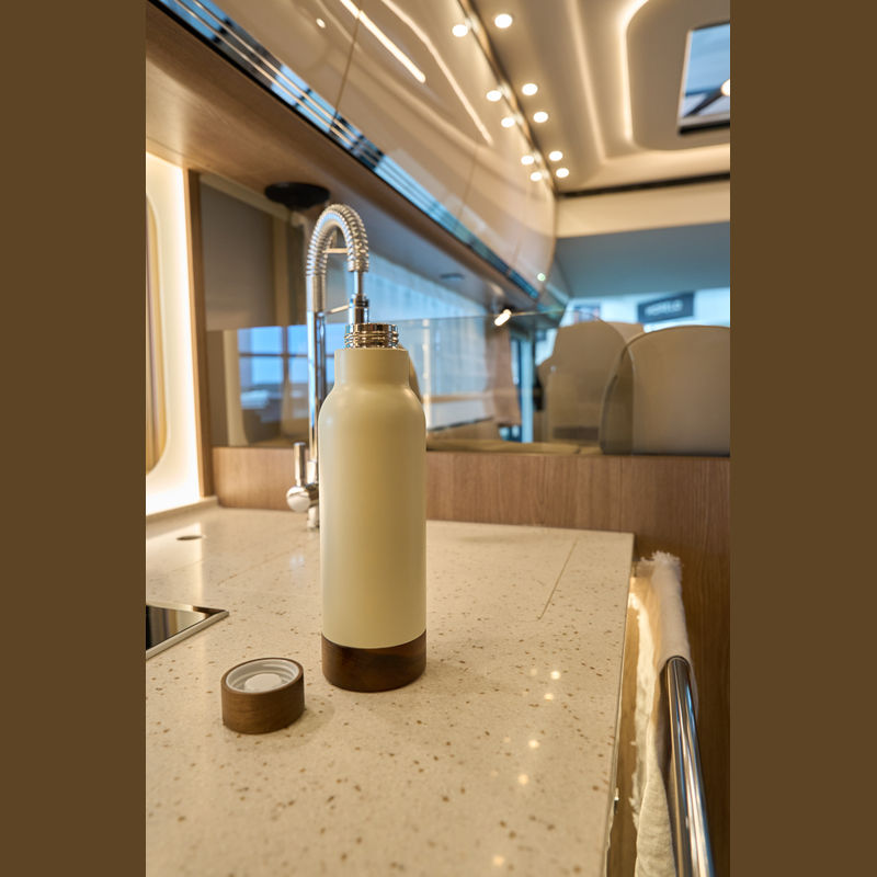 Experience exceptional refreshment with our MoLu double-walled vacuum-insulated drinking bottle crafted from recycled stainless steel. This premium bottle maintains the temperature of your beverages for extended periods, keeping them hot or cold, making it the ideal companion for travel. The airtight seal is complemented by a refined acacia wood lid and a sturdy acacia wood base, imparting an elegant and natural aesthetic to the bottle. With a generous capacity of 630 ml, it provides ample space for your favourite drinks. This drinking bottle seamlessly combines functionality with sophisticated design, making it an excellent choice as a distinguished promotional gift or for personal use. Presented in exclusive gift packaging with a 2-year warranty.