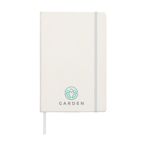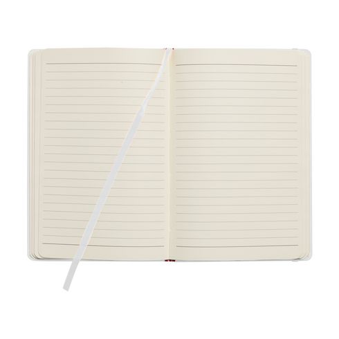 Notebook in A5 format with approx. 96 sheets/192 pages pages of cream coloured, lined FSC Mix certified paper (80 g/m²). With a bound spine, hard cover, elastic fastener and silk ribbon.