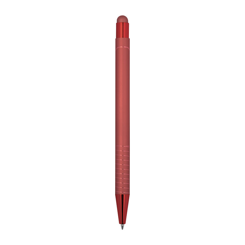 Ballpoint pen with integrated touch pen for smartphones and tablets. Features a glossy color-mirror finish, blue ink.
