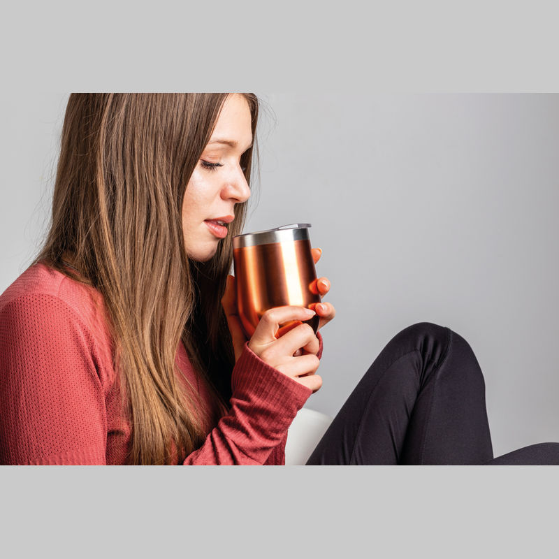 Double-walled, vacuum drinking cup, made of stainless steel, with a capacity of 300 ml and a transparent drinking cap. Your logo will be engraved on the mug.