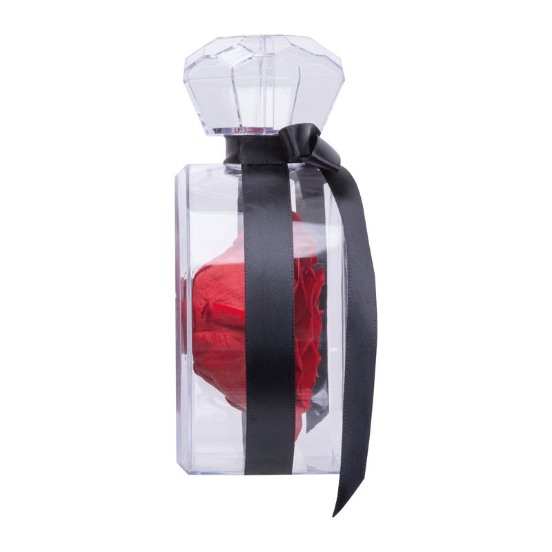 Real preserved rose in an elegant acrylic box with a ribbon and a refined crystal-look finish. The rose retains its natural beauty for several years, a stylish and long-lasting gift.