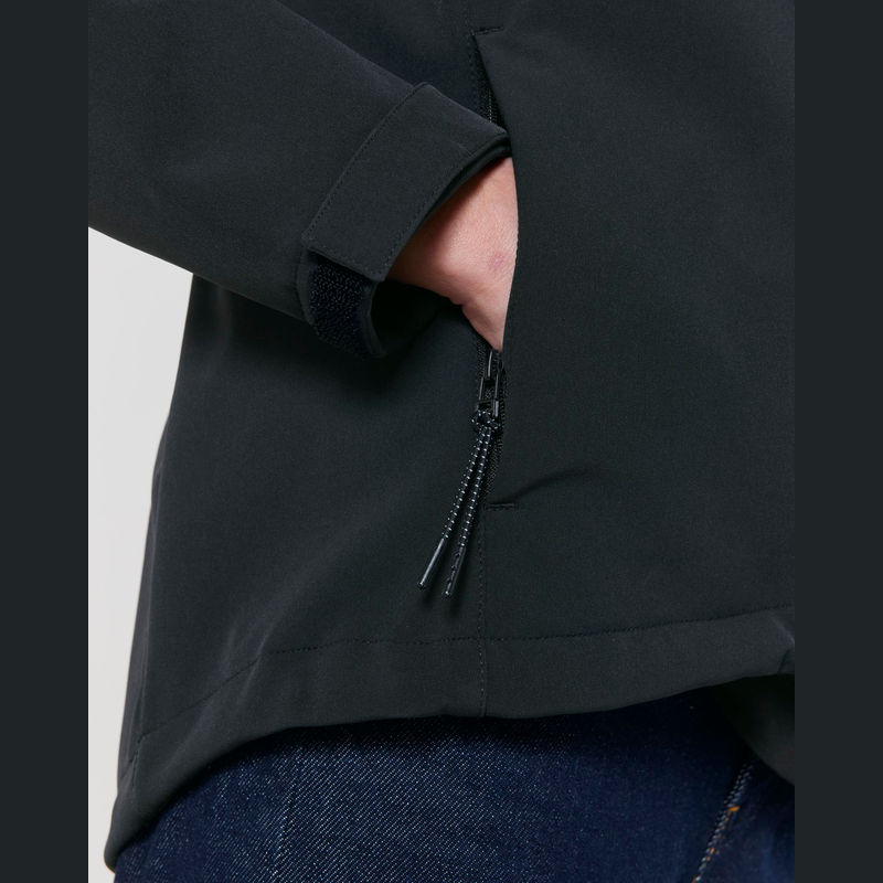 Stylish, eco-friendly softshell jacket with 94% recycled polyester, water repellent up to 10000mm, windproof, breathable. Perfect for outdoor activities and sustainable fashion enthusiasts.
