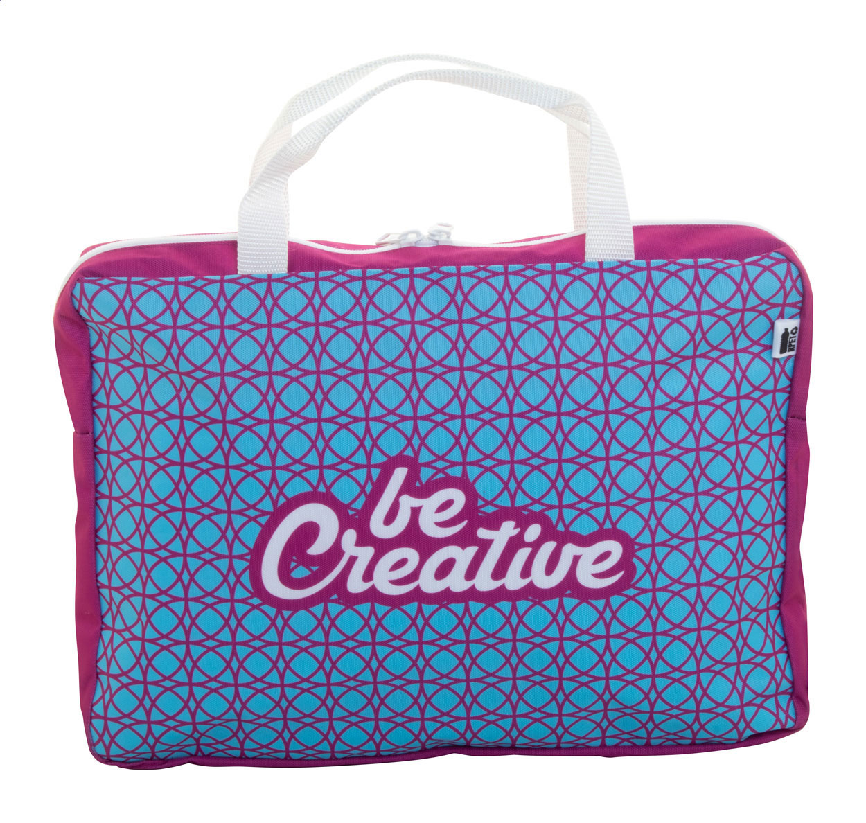 Geantă pentru documente, personalizată, cu fermoar, din poliester 600D RPET, cu compartiment pentru laptop (15"). Cu grafică imprimată prin sublimare și etichetă distinctivă RPET. MOQ: 25 buc.