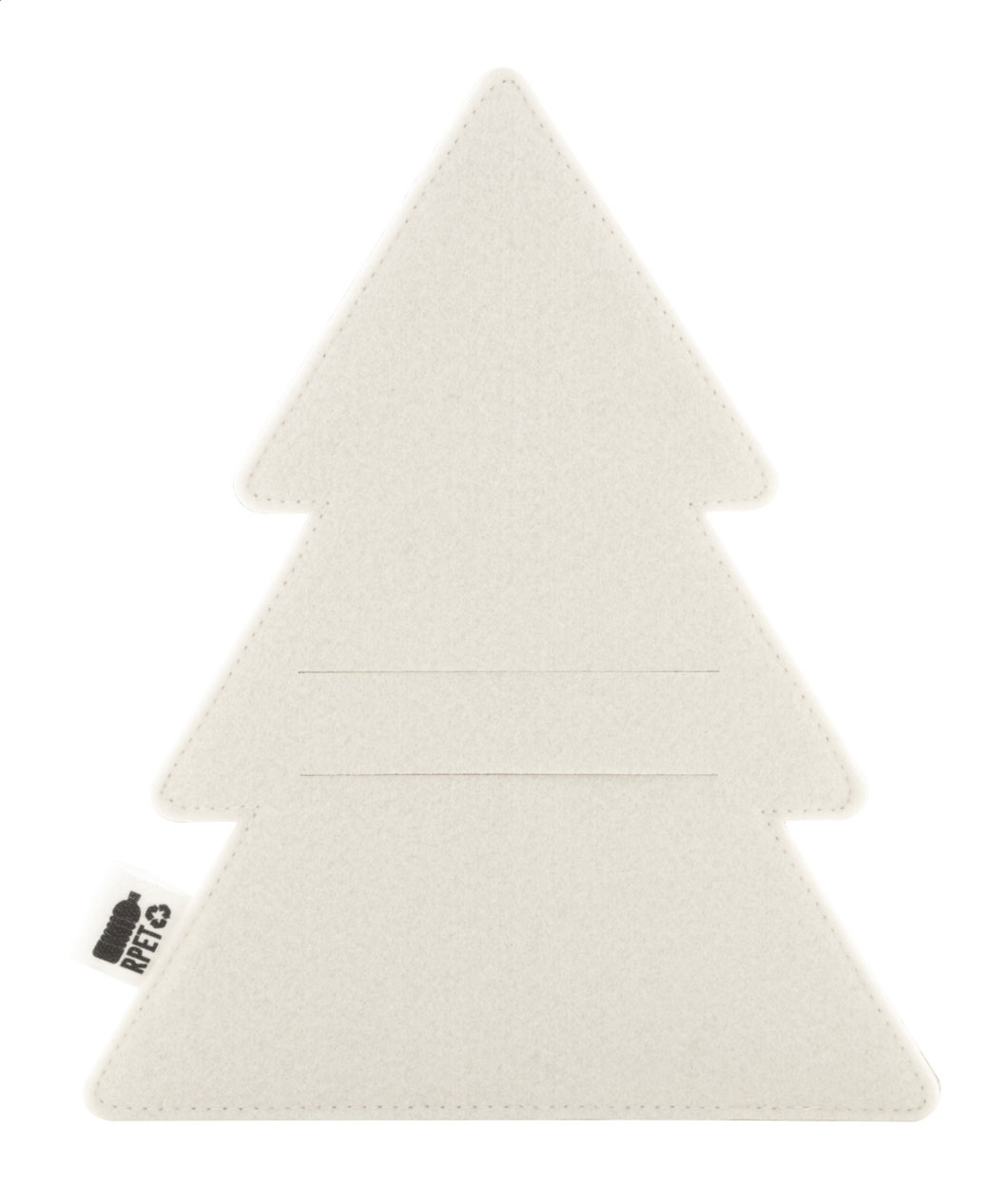 Suport pentru tacâmuri, din pâslă RPET, realizat la comandă, cu partea frontală imprimată color și etichetă RPET distinctă. Pretul include imprimarea prin sublimare. MOQ: 50 buc.