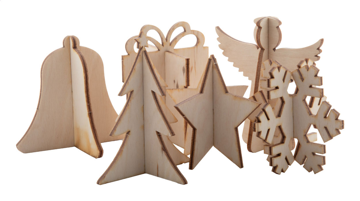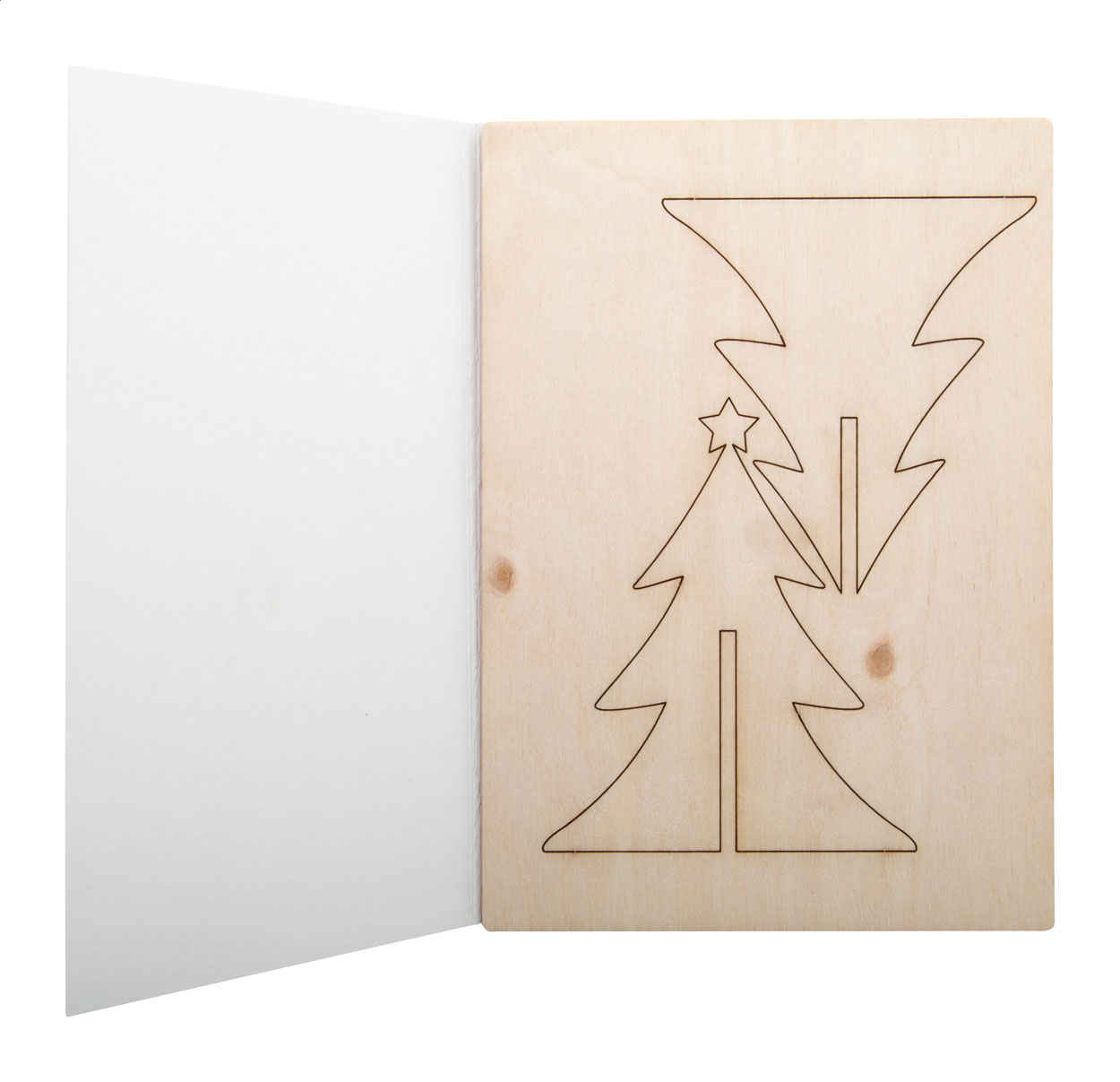 Felicitare de Crăciun din hârtie personalizată pe ambele fețe, cu decorațiune de Crăciun puzzle din lemn. Plic C6 inclus. Cantitate minimă de comandă: 100 buc.