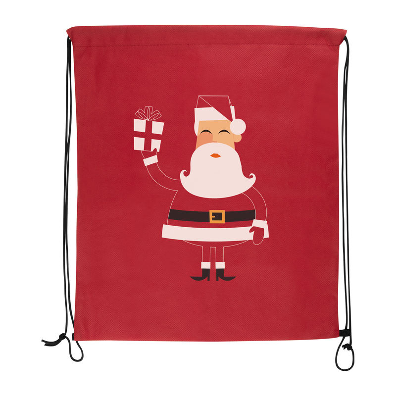 Non-woven gymbag with Santa Claus print. We will print your logo on the free area of the bag.