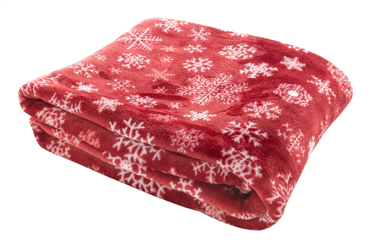Pătură de Crăciun, din fleece RPET, 260 g/m². Cu carton de hârtie imprimabilă și panglică.