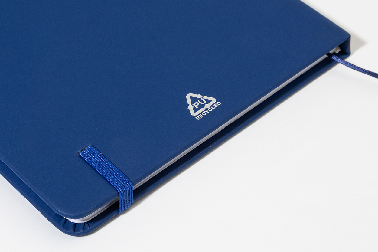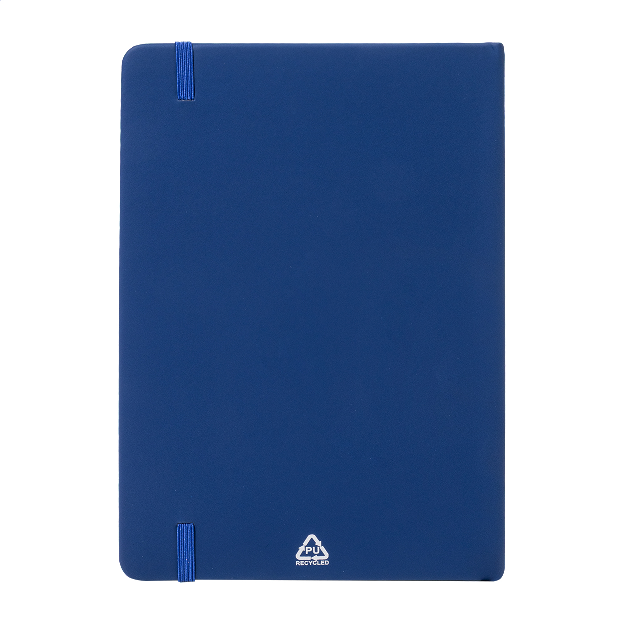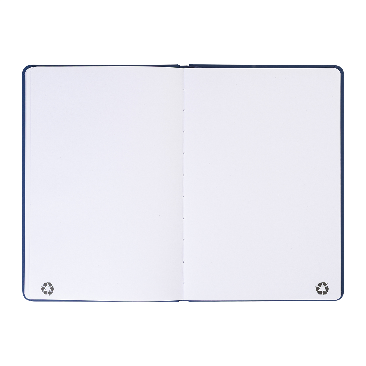 Caiet cu copertă din piele PU reciclată, cu 100 de foi veline din hârtie reciclată. Cu semn de carte de culoare asortată și bandă de cauciuc. Dimensiune A5.