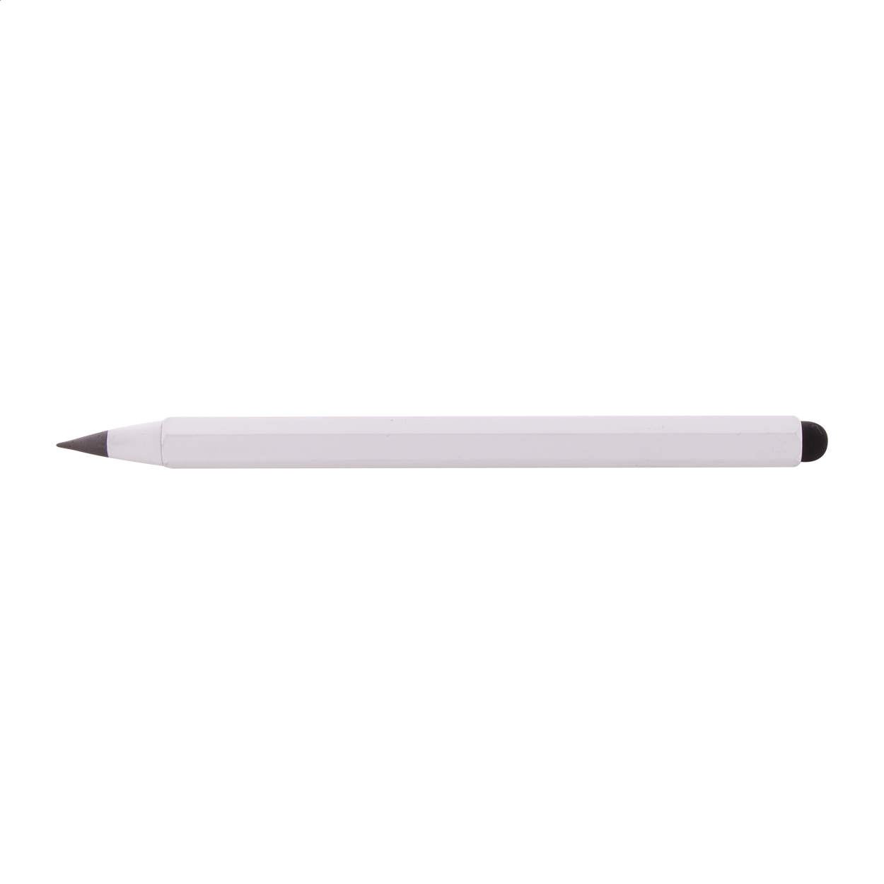 Pix fără cerneală, de lungă durată, din aluminiu reciclat, cu stilou tactil și vârf din aliaj metalic, care oxidează hârtia. Cu butoi hexagonal, inclusiv rigle de 11 cm și 4 inchi. Acest stilou scrie în mod similar cu un creion și este, de asemenea, șters.