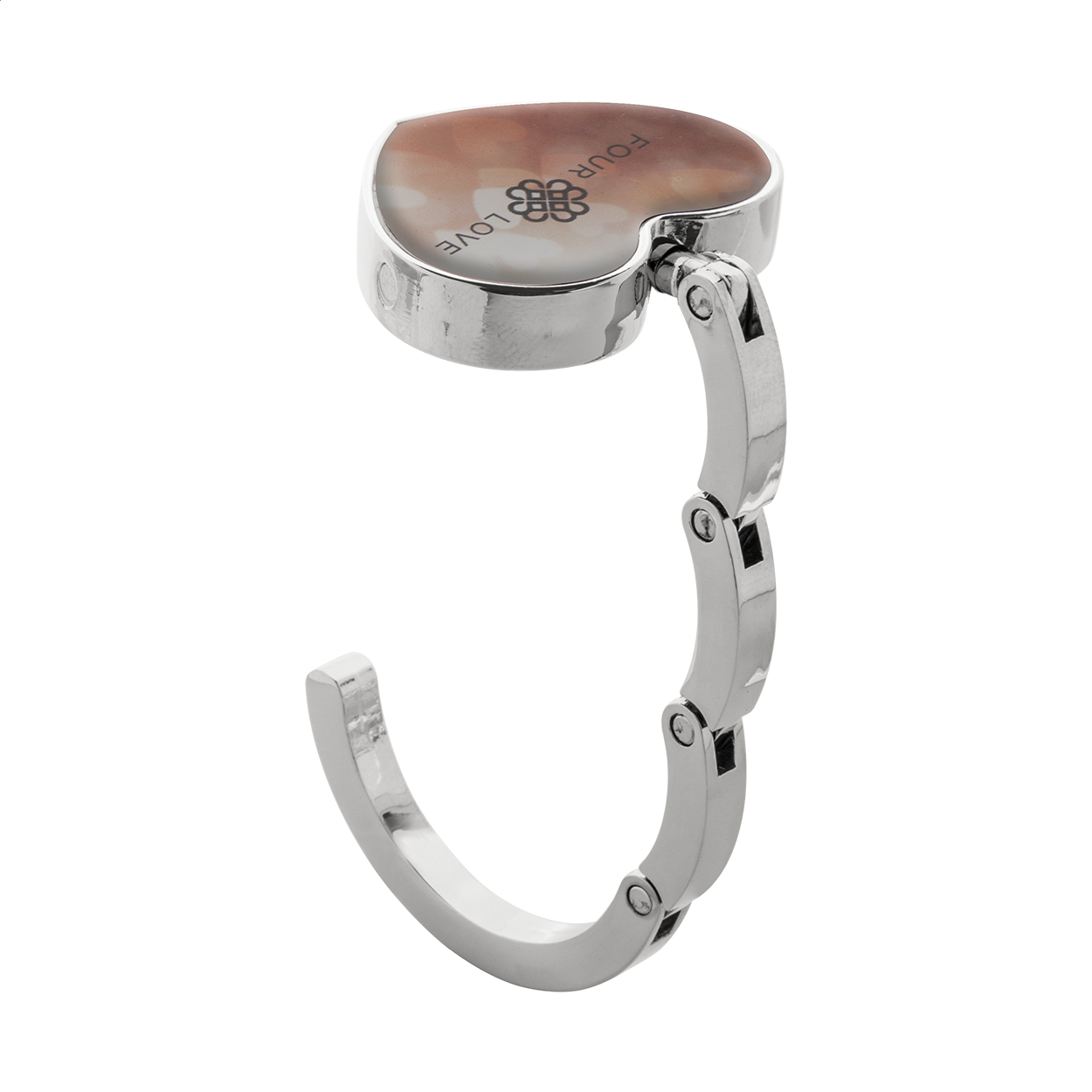 Cârlig pentru geantă în formă de inimă, închidere cu magnet. În cutie neagră de cadou.