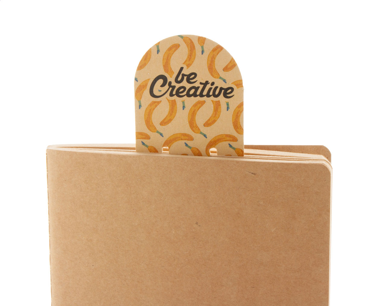 Semn de carte personalizat, din hârtie kraft reciclată, cu note adezive. Include 25 de coli de hârtie reciclată (50×75 mm). Prețul include imprimarea color pe față. MOQ: 100 buc.
