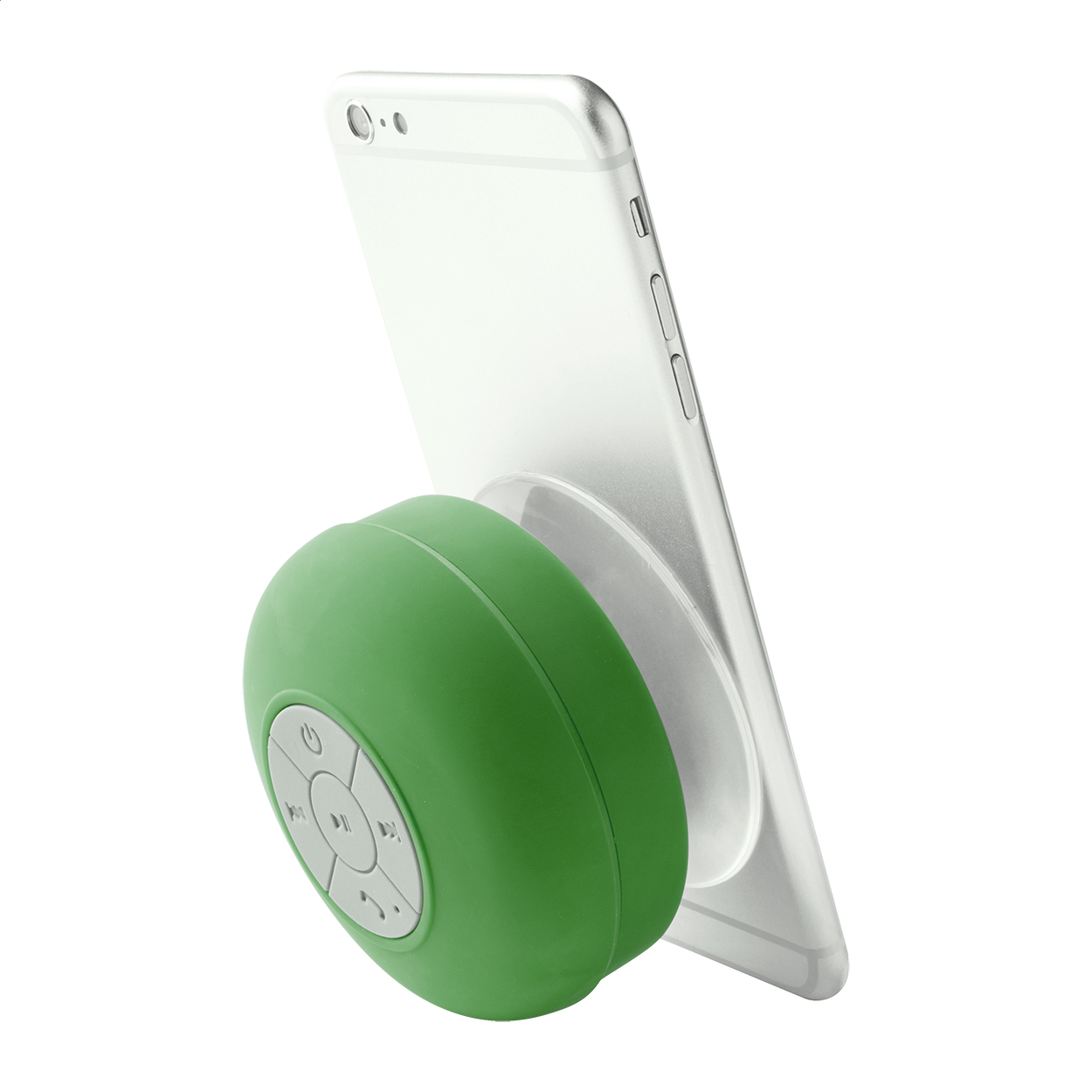 Difuzor wireless cu carcasă acoperită cu cauciuc și ventuză mare. Cu funcție de apelare mâini libere și baterie reîncărcabilă încorporată. Inclusiv cablu de încărcare USB.