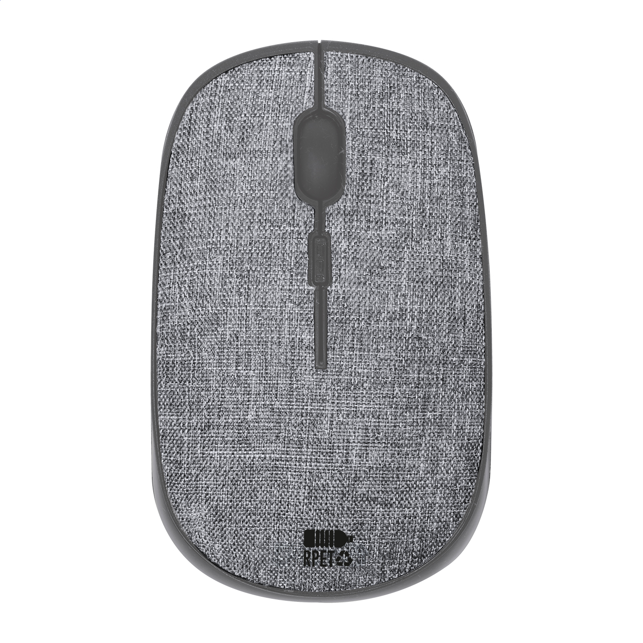 Mouse optic, fără fir, cu carcasă acoperită cu poliester RPET. Funcționează cu 1 baterie AA, livrat fără baterie.