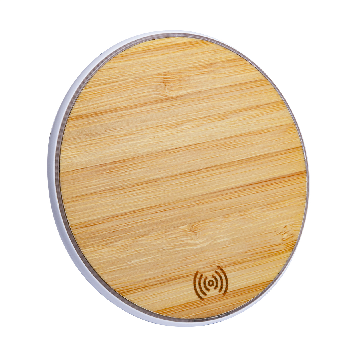 Încărcător wireless (10W) în carcasă din bambus și plastic. Inclusiv cablu de încărcare USB.