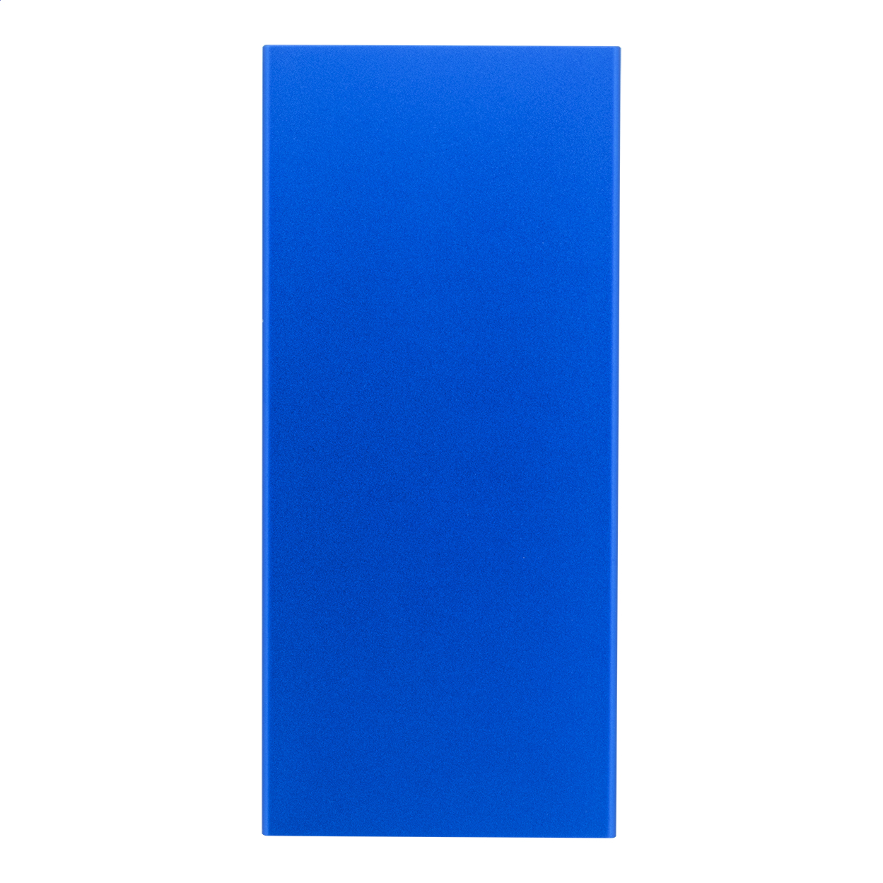 Baterie externă din aluminiu reciclat, cu baterie de 10000 mAh. Cu 2 porturi USB și 1 USB-C pentru încărcător. Port de intrare USB-C. Inclusiv cablu de încărcare USB.