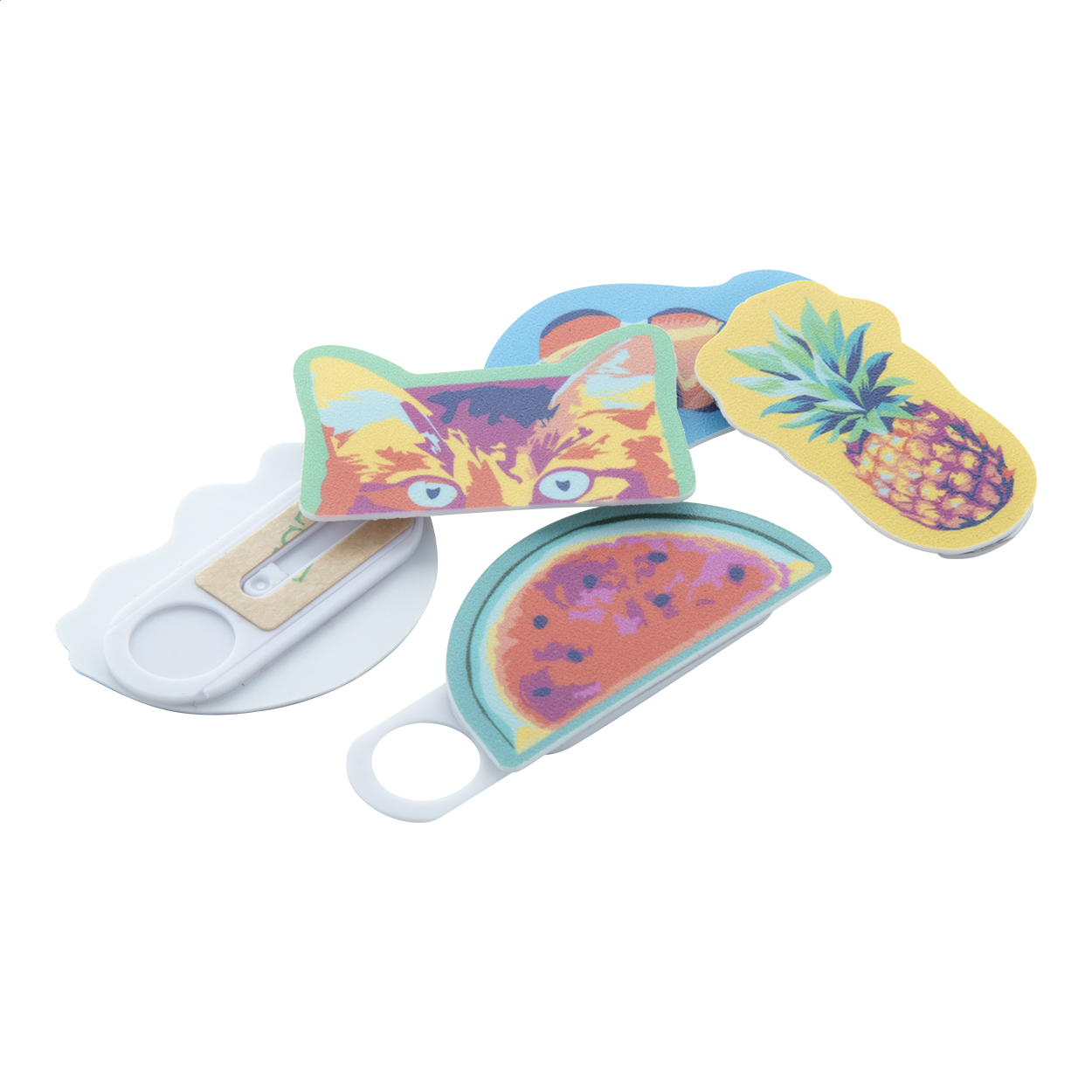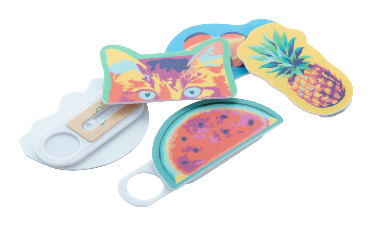 Protecție din plastic pentru webcam, înveliș cu formă personalizată și imprimare full color (dimensiune maximă: 50 × 25 mm). Cu capac glisant. Prețul include imprimarea digitală și imprimarea cu UV LED. Cantitate minimă de comandă: 100 buc.