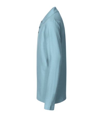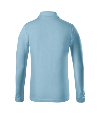 cut with side seams, 1:1 rib knit collar with double relief stripe, placket with 3 buttons in the shell fabric colour, inner neckline with a shell fabric tape, fixing shoulder seams, long sleeves