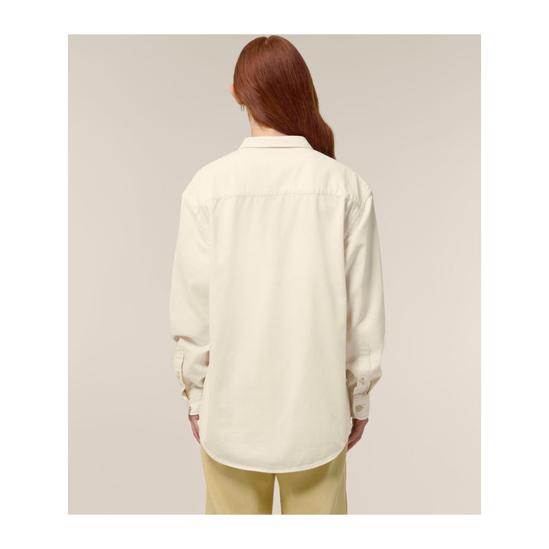 Unisex relaxed fit, 100% organic cotton twill, 285 g/m². Inspired by workwear, eco-friendly, durable, and ideal for customization. Faded seams from garment washing add unique style.