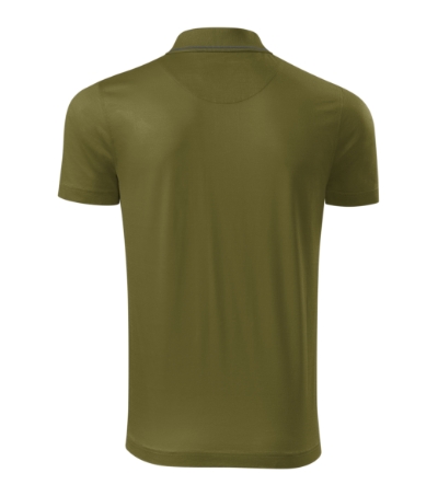 cut with side seams, 1:1 rib knit collar with a contrast stripe, placket with 3 buttons in the shell fabric colour, slits in side seams with a contrast tape, inner neckline with a contrast tape, fixing shoulder seams, cotton treated by mercerization